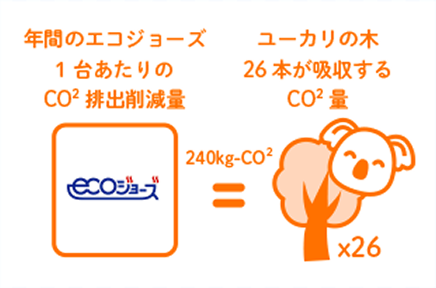 その削減量は、1年間で約240kg-CO2※1。これはアイドリングストップの約6倍※2、26本のユーカリの木が吸収するCO2量に相当します。