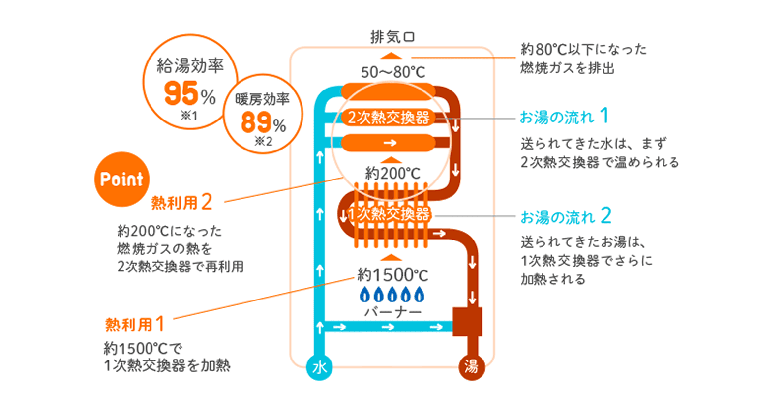 Point1毎日の熱をリサイクルするかしこい給湯器