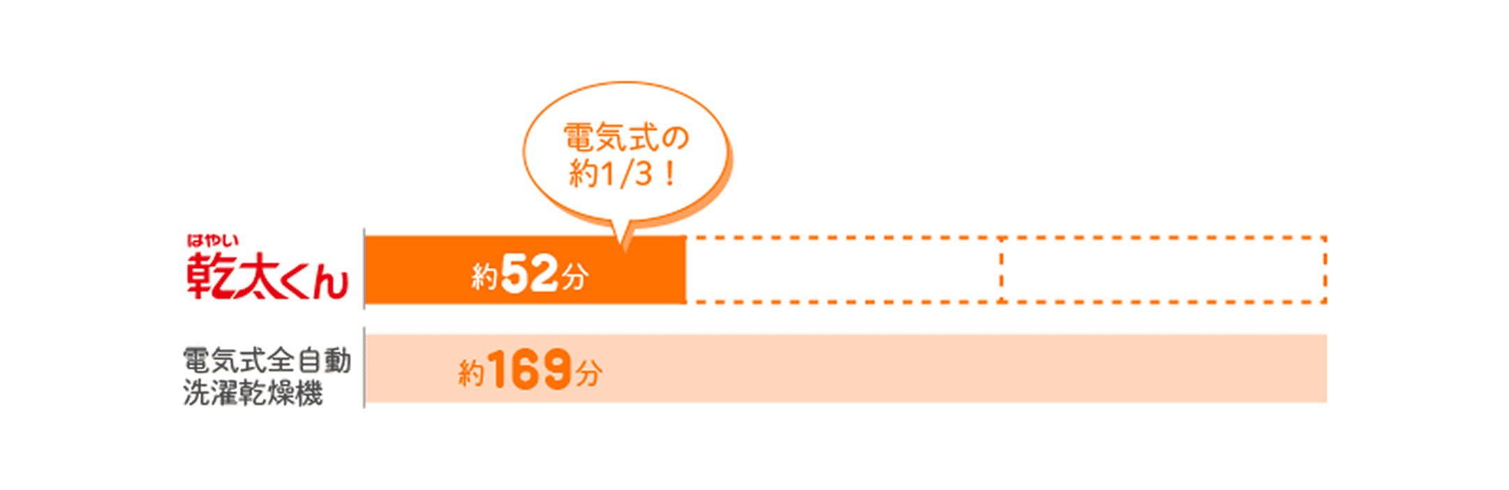 ガスならではのパワーで、乾燥時間は電気式の約1/3。
